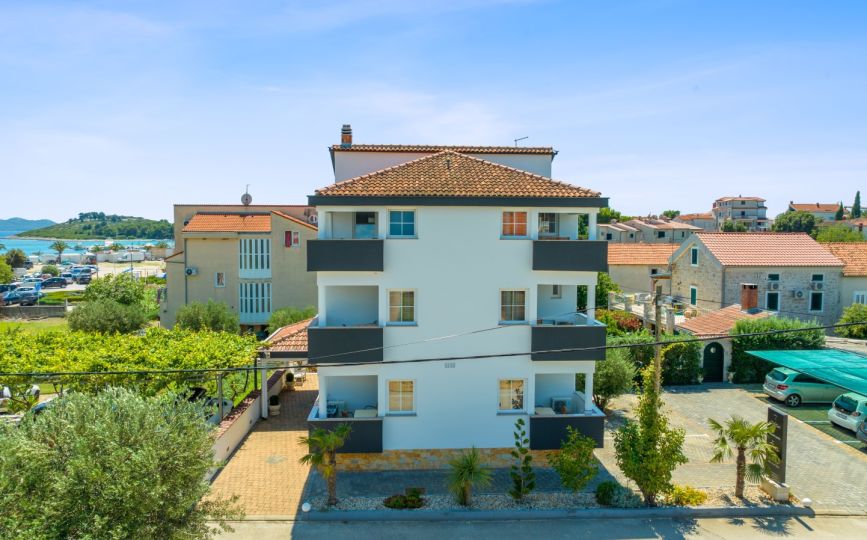Apartmani „Žana“ nalaze se u centru Pakoštana, stotinjak metara od mora, obasjani suncem.