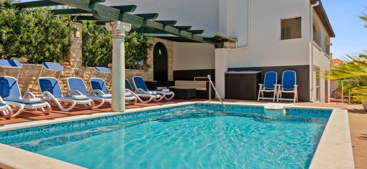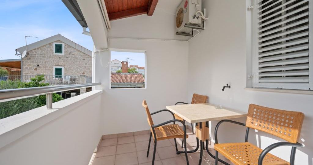 Studio apartman se nalazi na visokom prizemlju obiteljske kuće. Sastoji se od mini kuhinje i spavaće sobe, zasebne kupaonice i balkona. Gostima je na raspolaganju vanjski bazen, zajednička terasa, dvorište, roštilj i vanjski tuš.