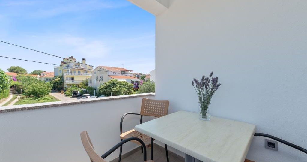 Studio apartman se nalazi na prvom katu obiteljske kuće. Sastoji se od mini kuhinje i spavaće sobe, zasebne kupaonice i balkona. Gostima je na raspolaganju vanjski bazen, zajednička terasa, dvorište, roštilj i vanjski tuš.